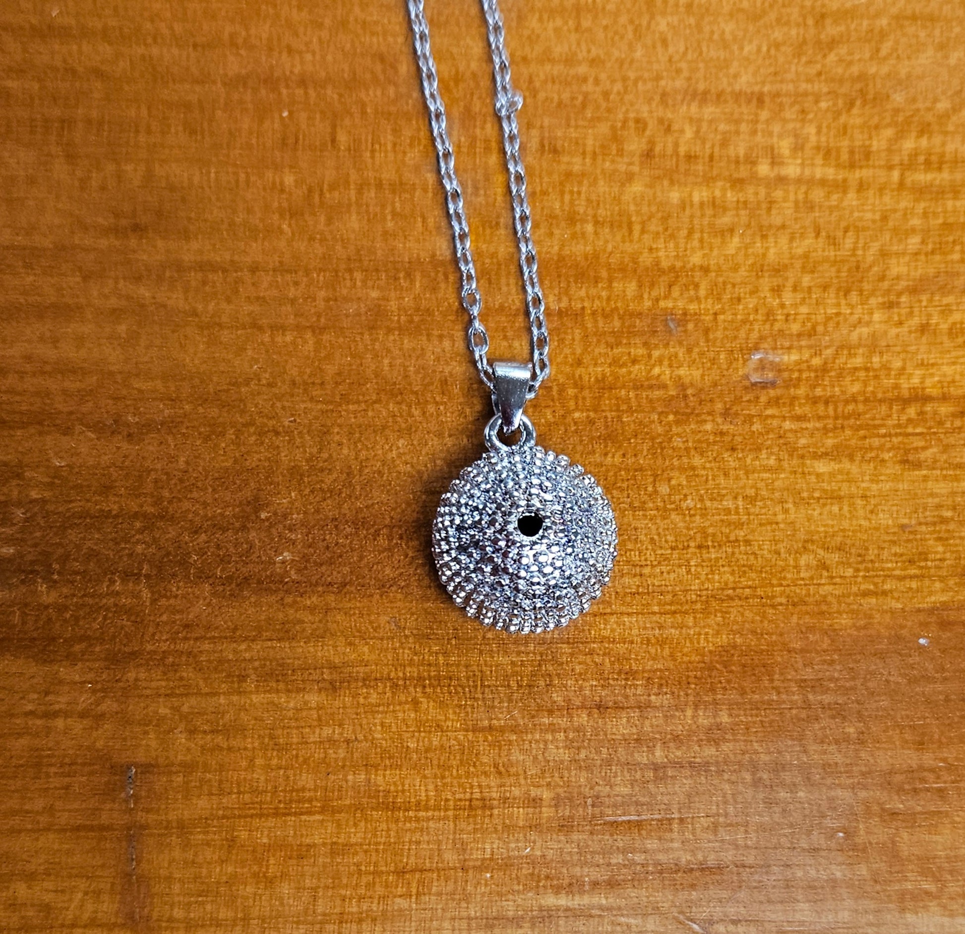 Beautiful Kina , sea urchin pendant on detailed chain, all in 925 sterling silver.