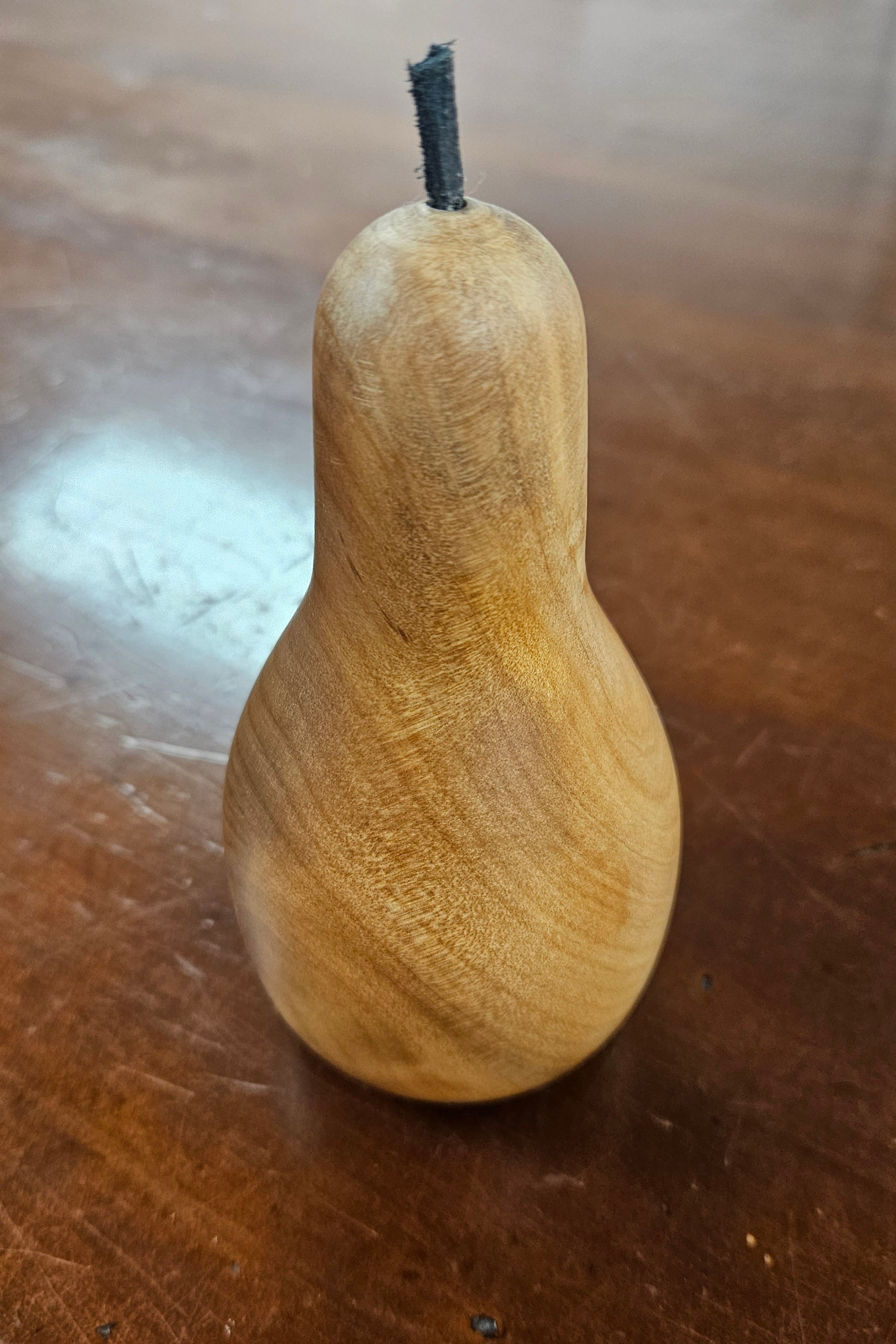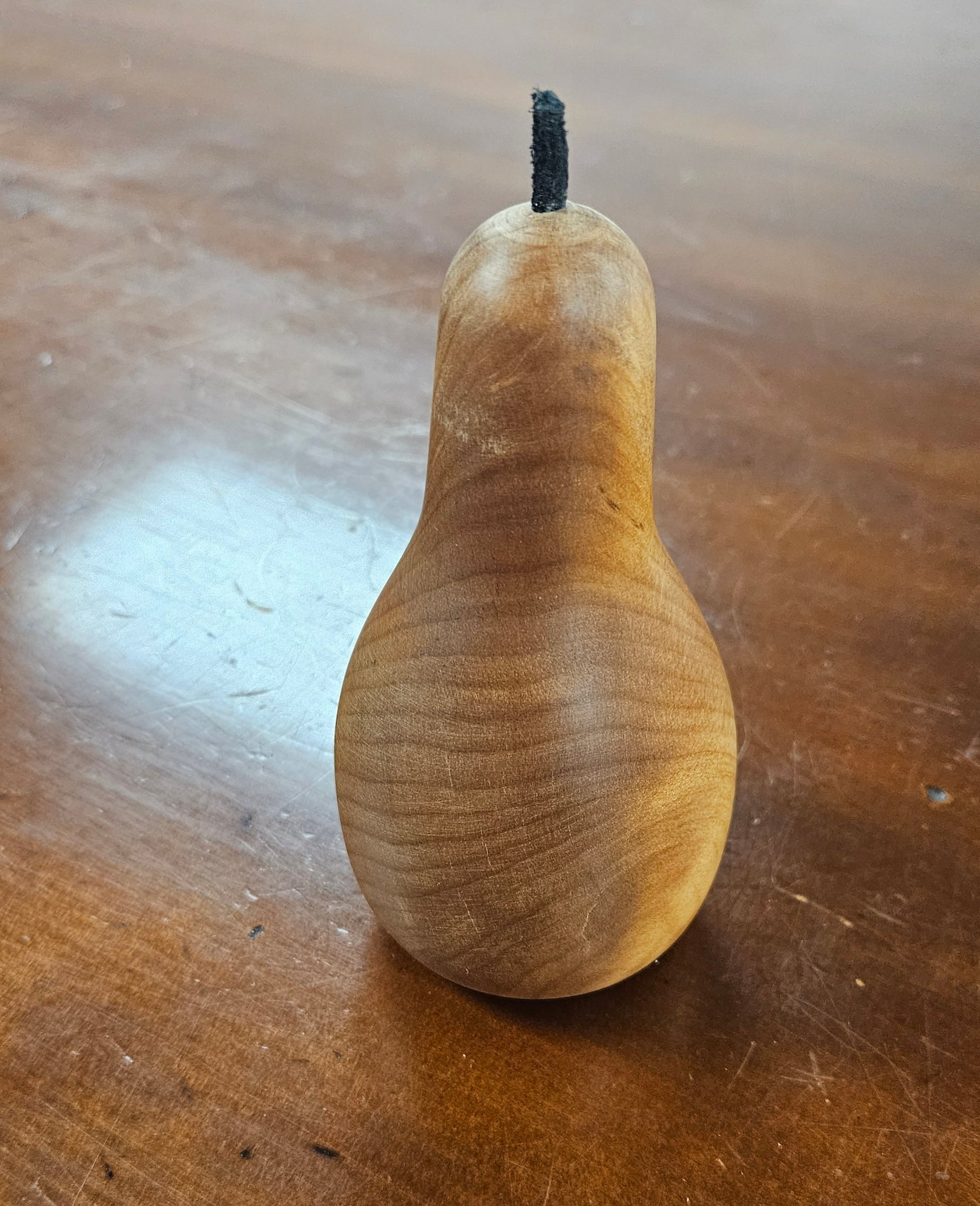 This is a lovely piece of kauri shaped into a pear, because kauri is a natural item, each pear is different in colour a grain pattern.