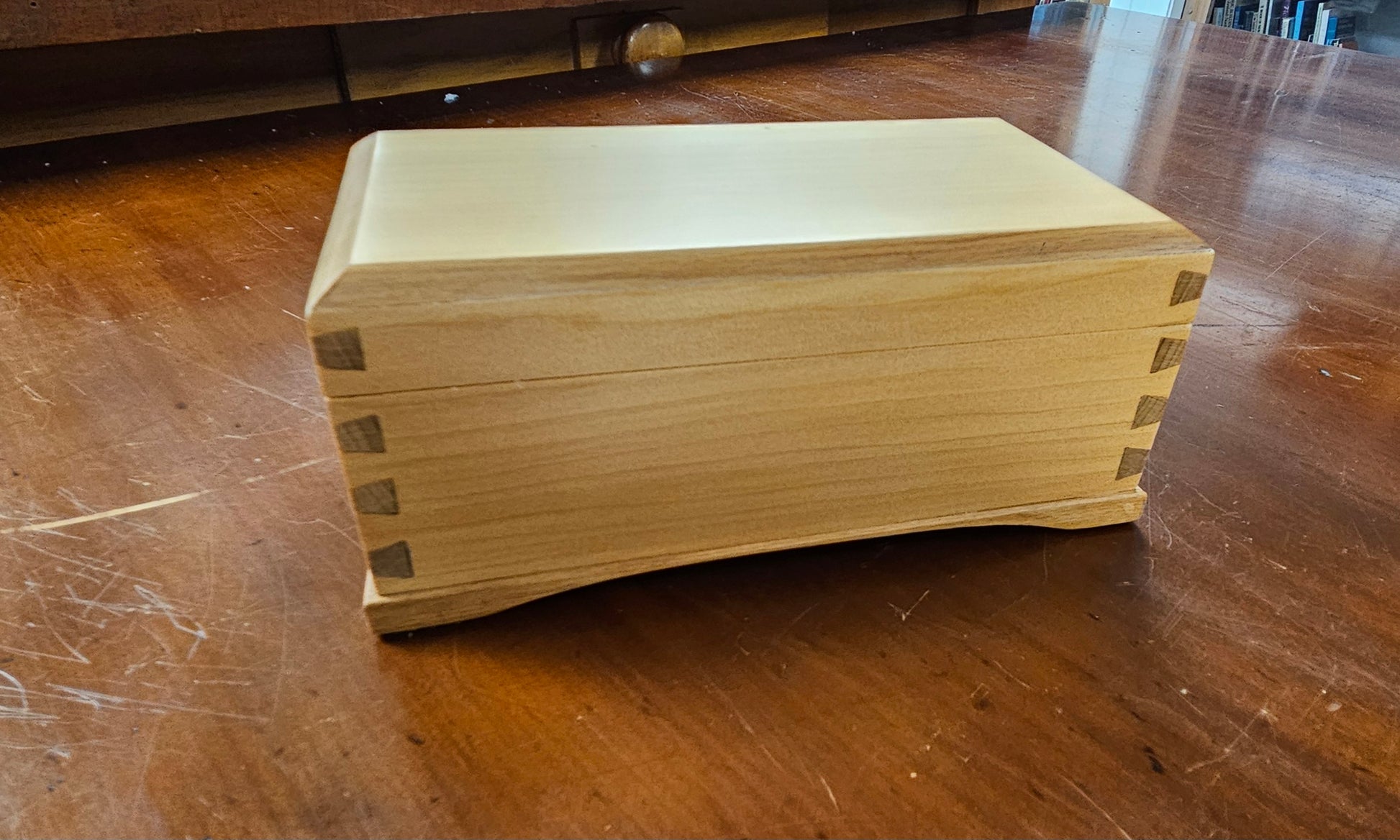 This box is beautifully hand crafted from recycled kauri, with rimu highlights.